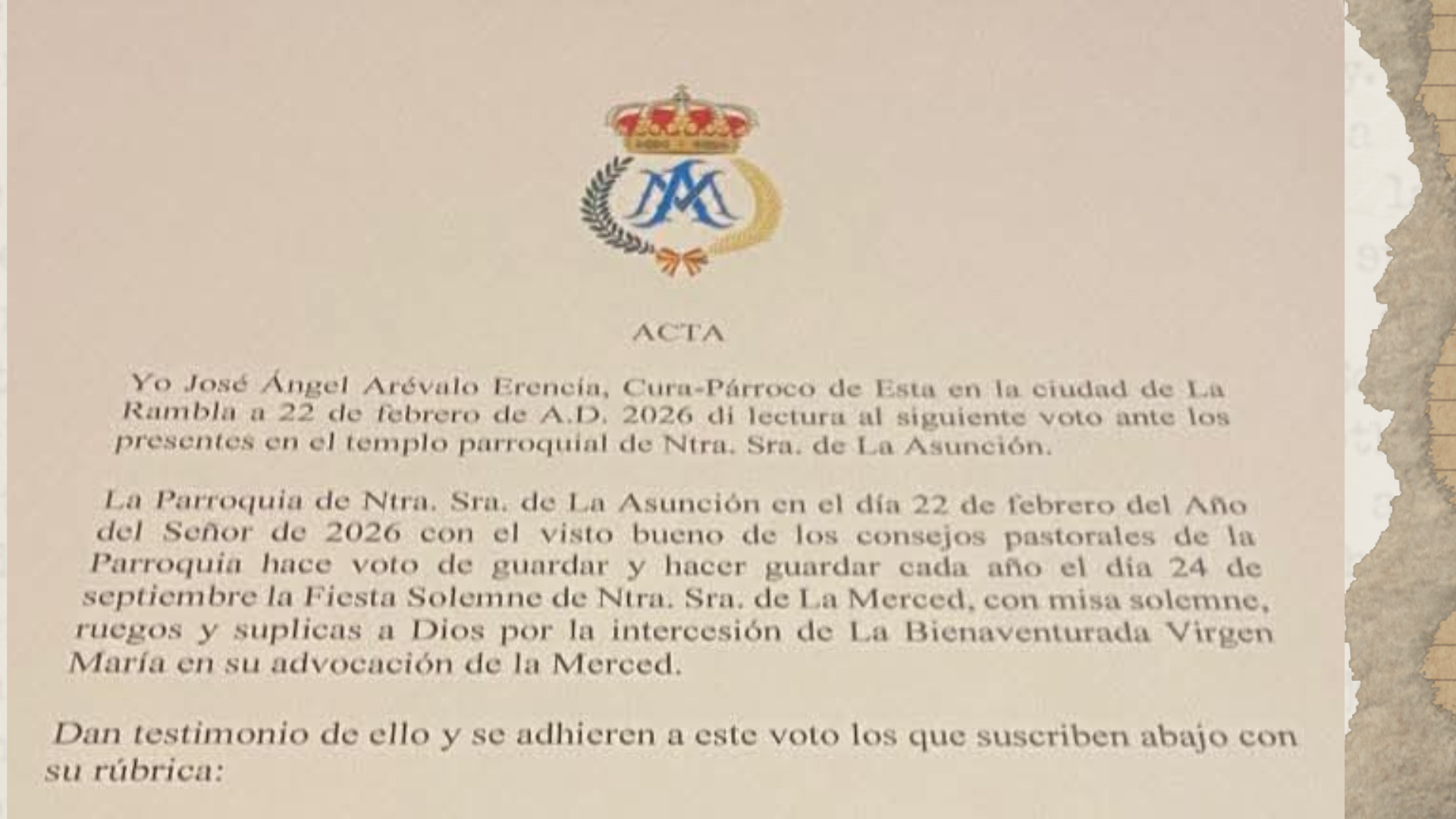 Con este gesto, el pueblo de La Rambla asegura que «el carisma mercedario y la devoción que las hermanas sembraron permanezcan vivos para siempre en el calendario litúrgico de la localidad», resalta la Agrupación cofrade local.